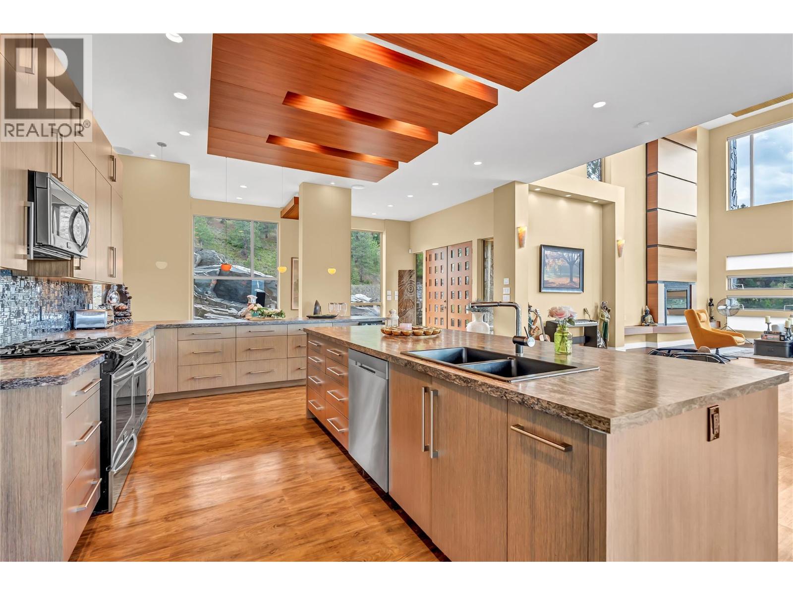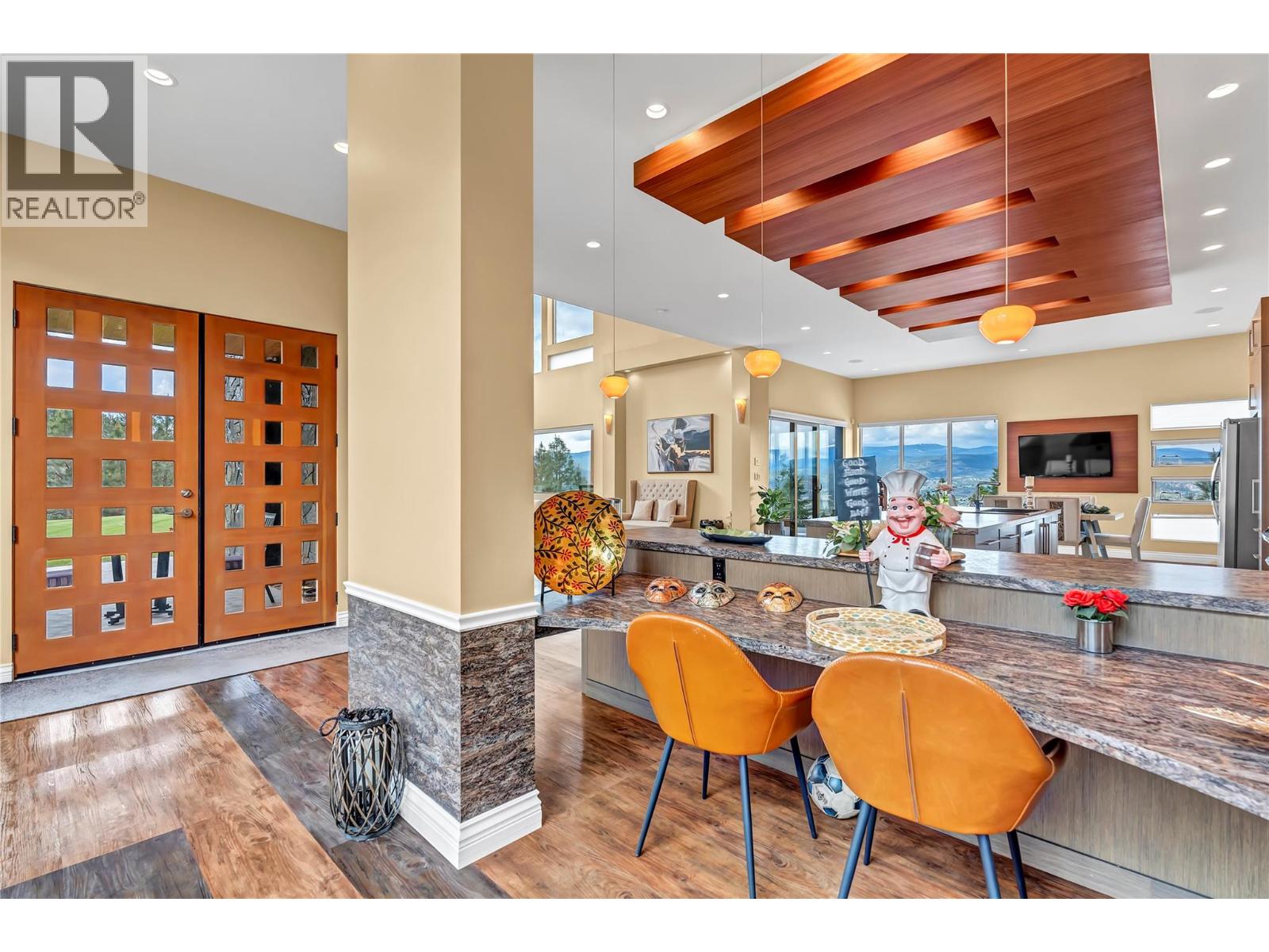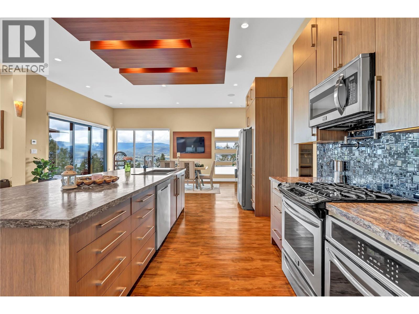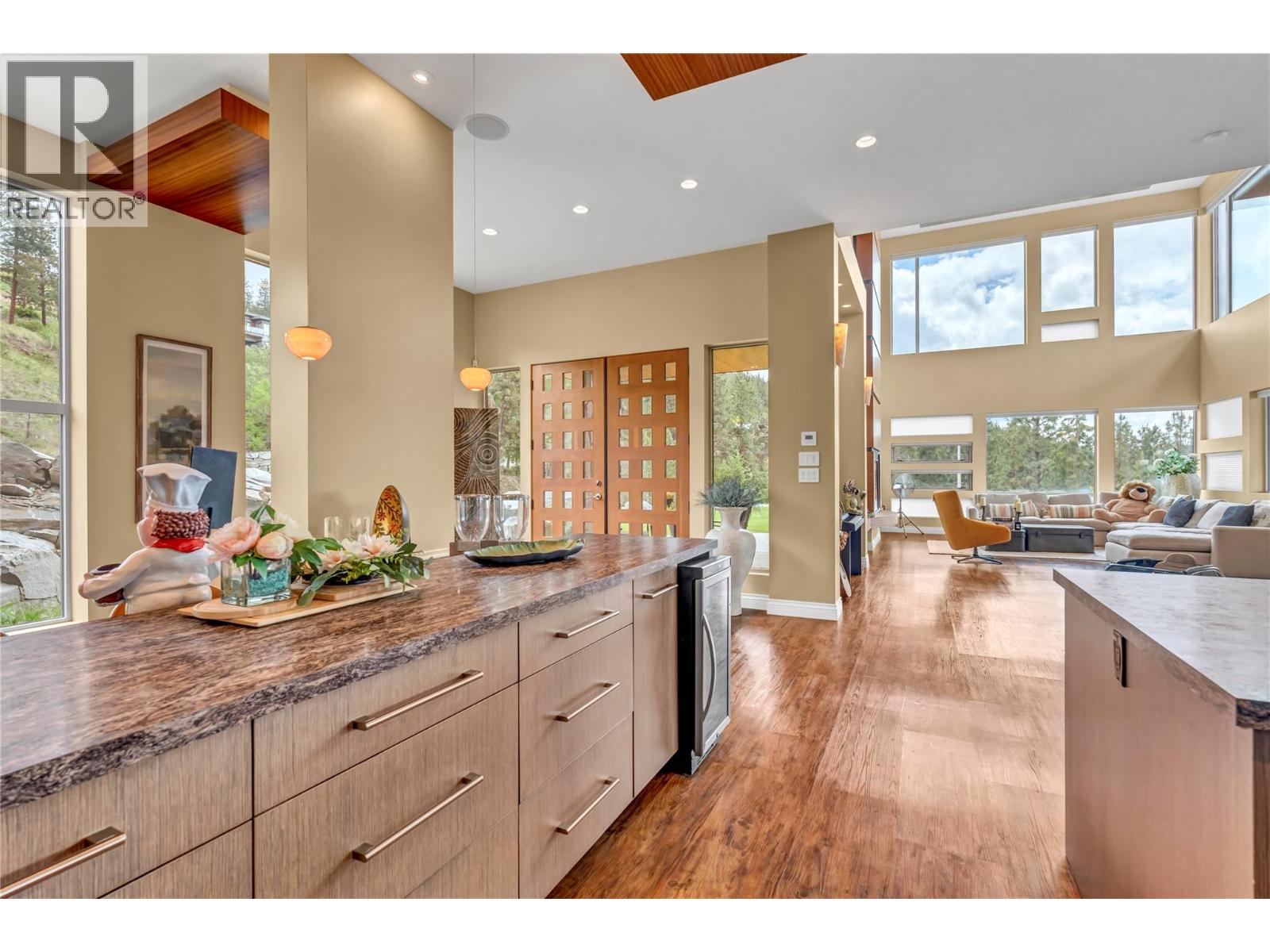 Welcome to Castlerock – A Modern Estate with Unmatched Views and Design Located on the Kettle Valley Rail Trail and surrounded by the award-winning wineries of the Naramata Bench, this exceptional estate offers panoramic views of Okanagan Lake and the surrounding mountains. This thoughtfully designed 5-bedroom, 4.5-bathroom home spans over 4,800 sqft, combining modern architectural elegance with everyday functionality. The open-concept grand room features soaring ceilings, expansive windows, and a gourmet kitchen equipped with high-end appliances and a large walk-in pantry — perfect for entertaining or relaxed family living. Two spacious sundecks — northeast and southwest facing — offer sun or shade throughout the day. Enjoy outdoor living year-round with a heated, chromatically-lit pool, infinity-edge hot tub, and an outdoor fireplace, all positioned to maximize the stunning views. Experience luxury, comfort, and natural beauty in one of the Okanagan’s most desirable locations. (id:17834)