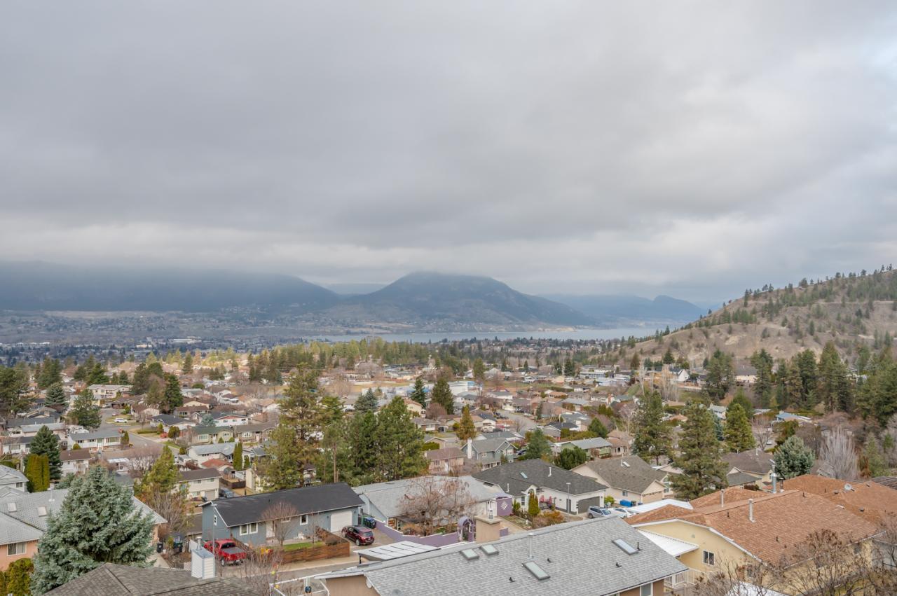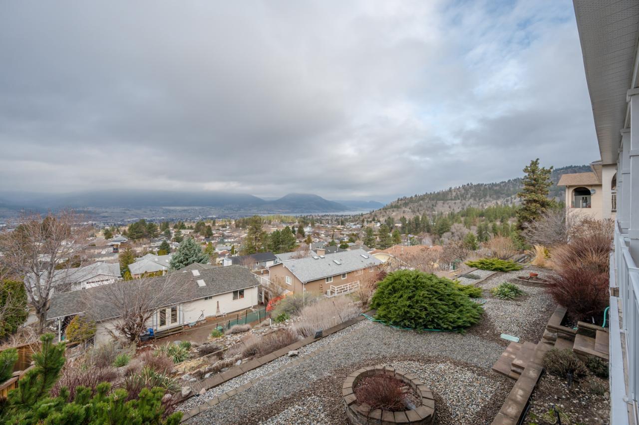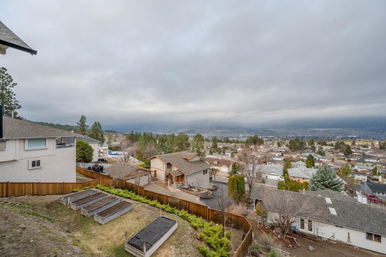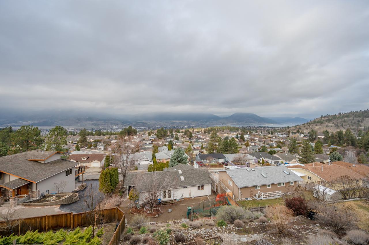 Quality abounds in this spacious four-bdrm home in one of Penticton’s best areas. Open concept foyer, dining and living room, with engineered hardwood and 9-ft. ceilings. Living room with city & lake views. Upgraded kitchen with centre-island, S/S appliances, computer desk and upper deck access. Three bedrooms on main level. Master suite includes ensuite, 2 closets, and French-door access to deck. Spacious family room on lower level, with high ceilings and bright views. Large guestroom, office/den, & vast hobby room, on lower level. Exposed aggregate driveway, plus parking for a boat or small-RV. 650+ sq. ft. garage with two bays plus a huge space for workshop. Gas furnace & HW tank. Central A/C. Terraced, irrigated & landscaped backyard with perennials, shrubs, lavender, Irises, lilies, and more. Got a dog? Nice trails near-by off Holden Rd. Check floorplans on multimedia link. (id:17834)