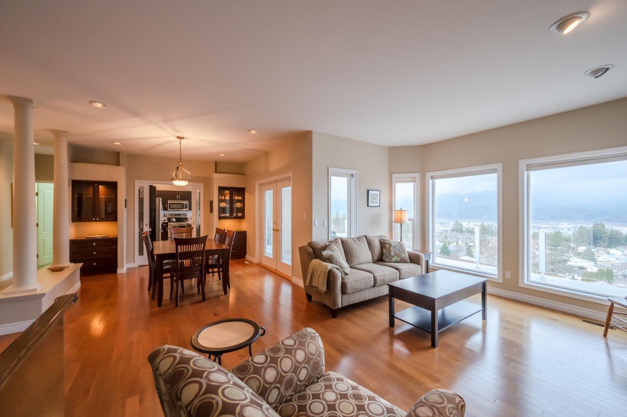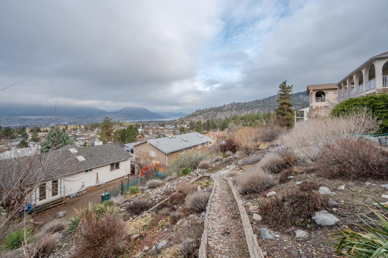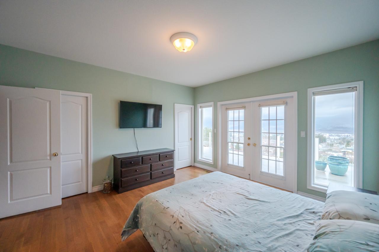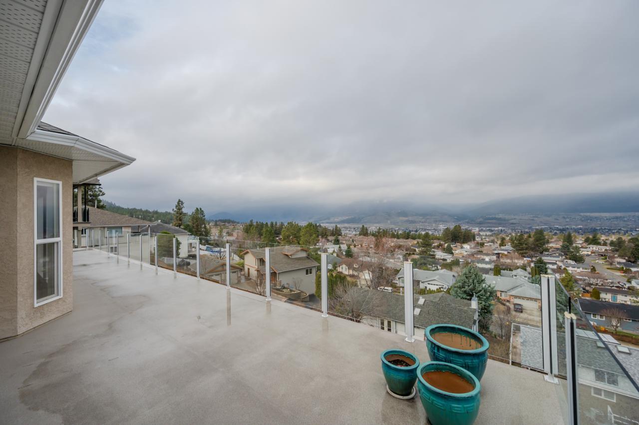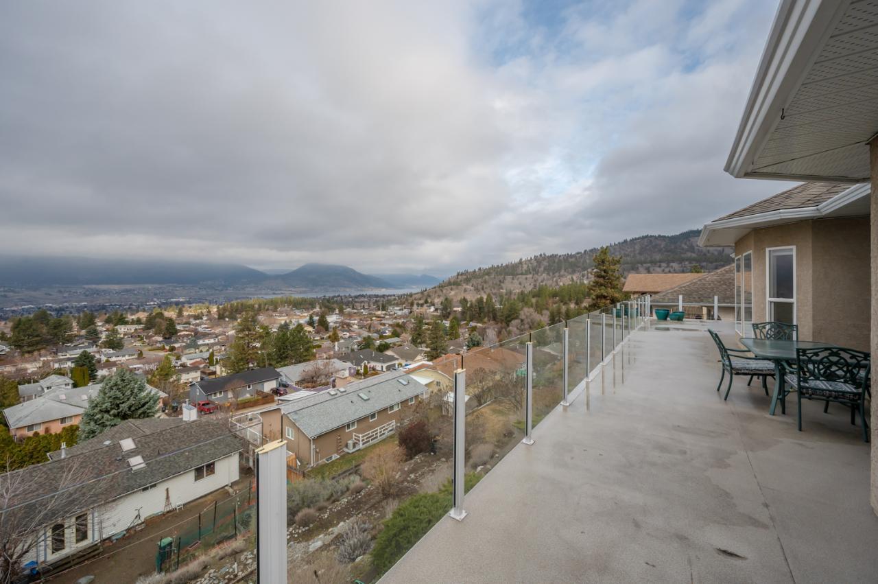 Quality abounds in this spacious four-bdrm home in one of Penticton’s best areas. Open concept foyer, dining and living room, with engineered hardwood and 9-ft. ceilings. Living room with city & lake views. Upgraded kitchen with centre-island, S/S appliances, computer desk and upper deck access. Three bedrooms on main level. Master suite includes ensuite, 2 closets, and French-door access to deck. Spacious family room on lower level, with high ceilings and bright views. Large guestroom, office/den, & vast hobby room, on lower level. Exposed aggregate driveway, plus parking for a boat or small-RV. 650+ sq. ft. garage with two bays plus a huge space for workshop. Gas furnace & HW tank. Central A/C. Terraced, irrigated & landscaped backyard with perennials, shrubs, lavender, Irises, lilies, and more. Got a dog? Nice trails near-by off Holden Rd. Check floorplans on multimedia link. (id:17834)