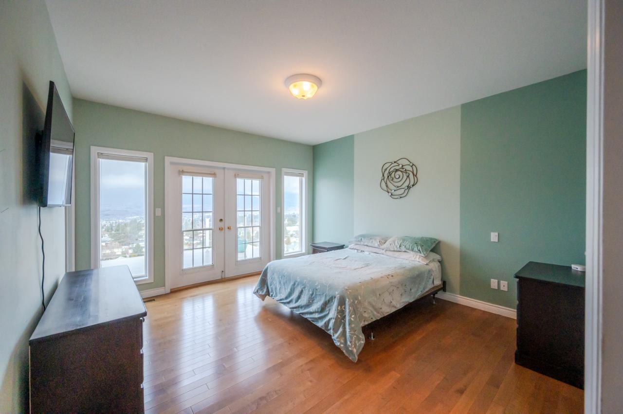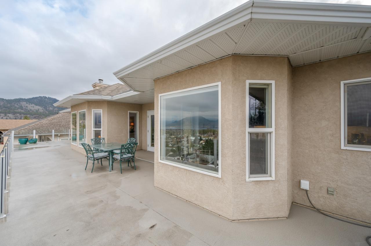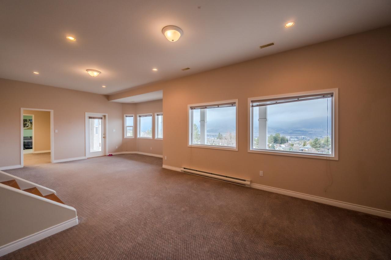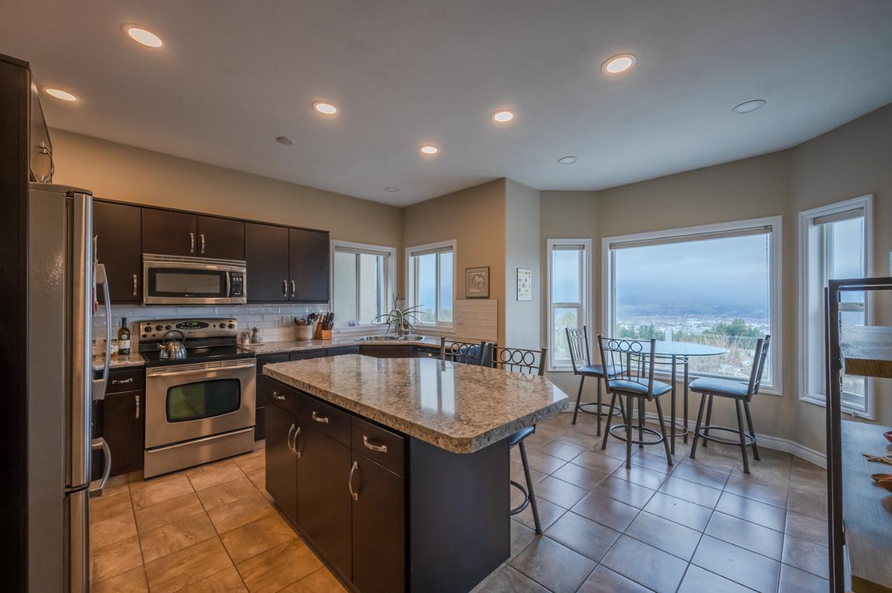 Quality abounds in this spacious four-bdrm home in one of Penticton’s best areas. Open concept foyer, dining and living room, with engineered hardwood and 9-ft. ceilings. Living room with city & lake views. Upgraded kitchen with centre-island, S/S appliances, computer desk and upper deck access. Three bedrooms on main level. Master suite includes ensuite, 2 closets, and French-door access to deck. Spacious family room on lower level, with high ceilings and bright views. Large guestroom, office/den, & vast hobby room, on lower level. Exposed aggregate driveway, plus parking for a boat or small-RV. 650+ sq. ft. garage with two bays plus a huge space for workshop. Gas furnace & HW tank. Central A/C. Terraced, irrigated & landscaped backyard with perennials, shrubs, lavender, Irises, lilies, and more. Got a dog? Nice trails near-by off Holden Rd. Check floorplans on multimedia link. (id:17834)