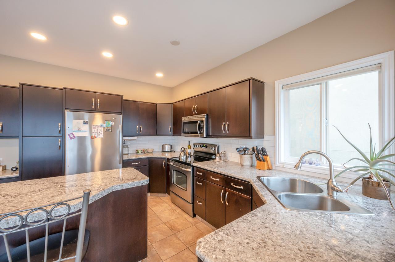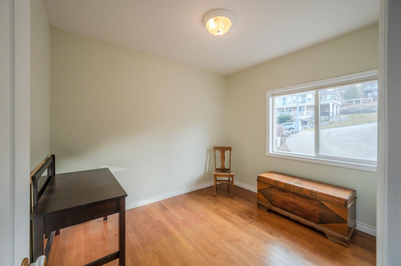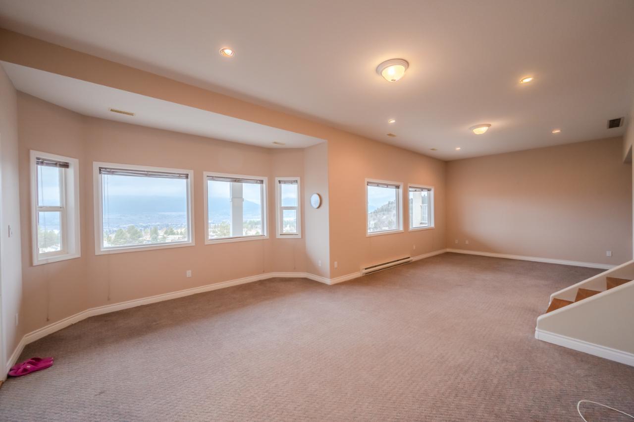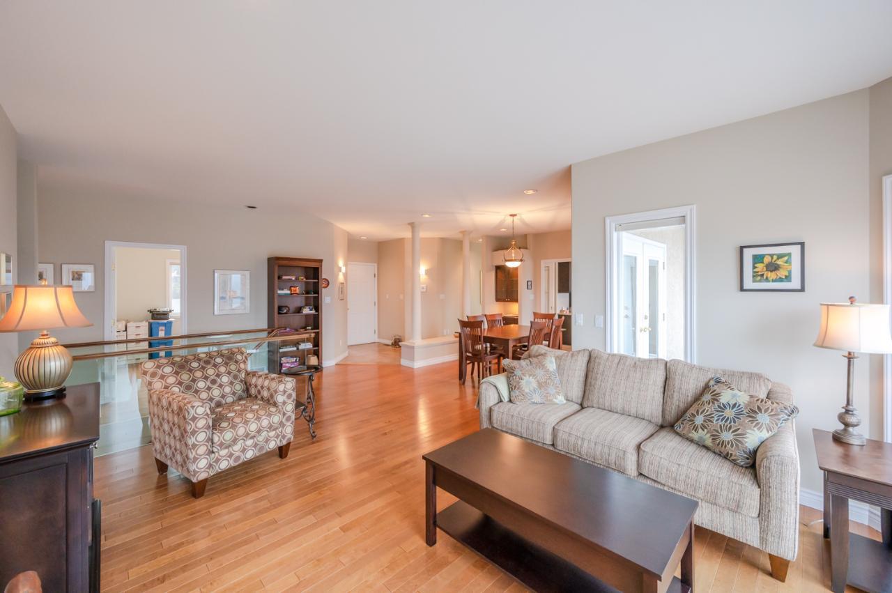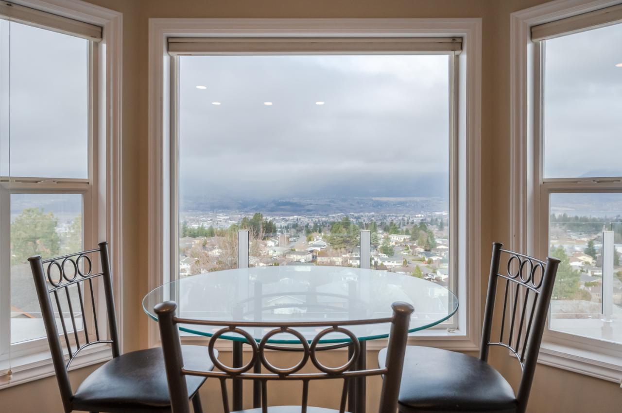 Quality abounds in this spacious four-bdrm home in one of Penticton’s best areas. Open concept foyer, dining and living room, with engineered hardwood and 9-ft. ceilings. Living room with city & lake views. Upgraded kitchen with centre-island, S/S appliances, computer desk and upper deck access. Three bedrooms on main level. Master suite includes ensuite, 2 closets, and French-door access to deck. Spacious family room on lower level, with high ceilings and bright views. Large guestroom, office/den, & vast hobby room, on lower level. Exposed aggregate driveway, plus parking for a boat or small-RV. 650+ sq. ft. garage with two bays plus a huge space for workshop. Gas furnace & HW tank. Central A/C. Terraced, irrigated & landscaped backyard with perennials, shrubs, lavender, Irises, lilies, and more. Got a dog? Nice trails near-by off Holden Rd. Check floorplans on multimedia link. (id:17834)